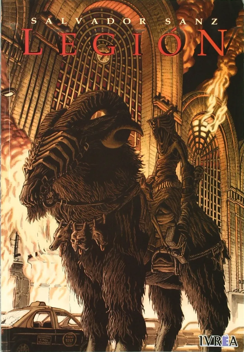 Llueve sangre sobre la ciudad de Buenos Aires. El cielo se abre para vomitar demonios. Son la Legión; son la muerte y la destrucción. ¿Por qué han venido? ¿Qué quieren? ¿Para qué recolectan los restos de sus víctimas? Nadie lo sabe. Sólo Félix, el guitarrista de una banda de barrio, tiene la clave para averiguarlo. Legión es un cómic de terror escrito y dibujado por Salvador Sanz, autor argentino, dueño de una imaginación desbordante y de una capacidad única de llevar al papel imágenes que se incrustan en la memoria de los lectores como meteoritos en llamas. Ahora los lectores españoles tienen la oportunidad de descubrir un autor con un mundo interior personalísimo, extraño y fascinante.
